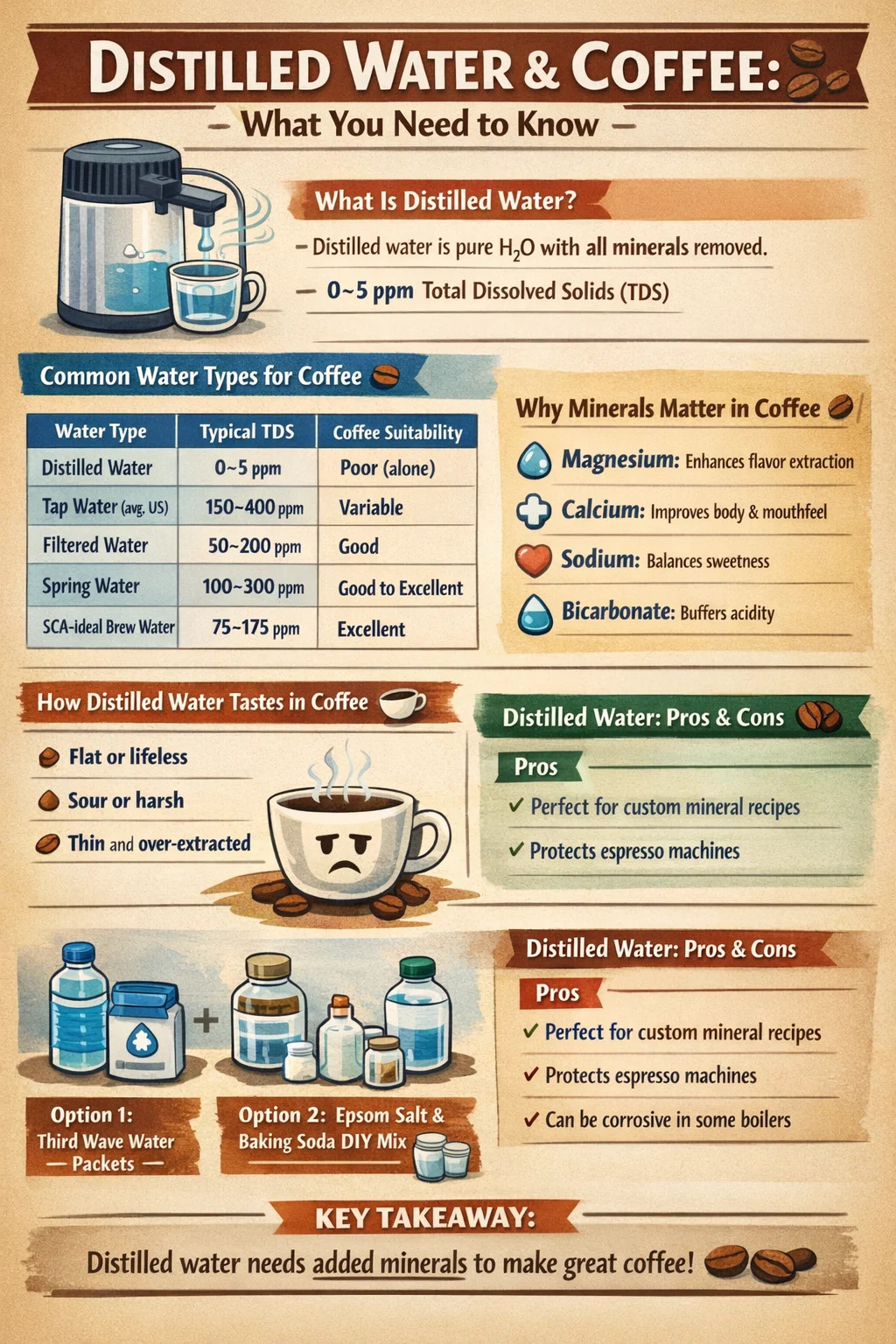 Ez a cikk pontosan leírja, mi történik, ha desztillált vizet használ a kávéhoz, mit mond a tudomány, hogyan veszik figyelembe a vízlepárlókat, és milyen alternatívák adnak jobb eredményeket találgatások nélkül.